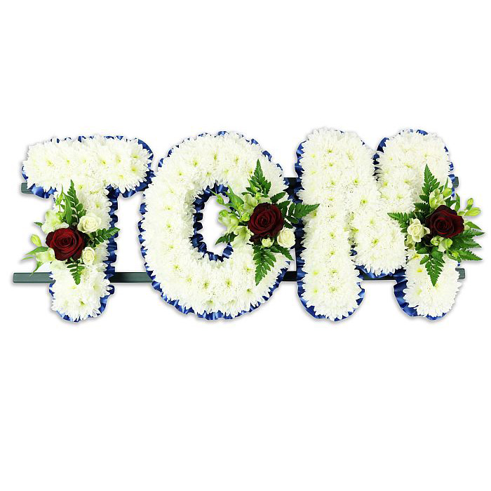 Express your condolences with our graceful and unique Letter Tribute bouquet. This beautiful arrangement showcases a blend of white chrysanthemums, vibrant red roses, and fragrant white freesias, meticulously arranged to honor and remember a cherished loved one.